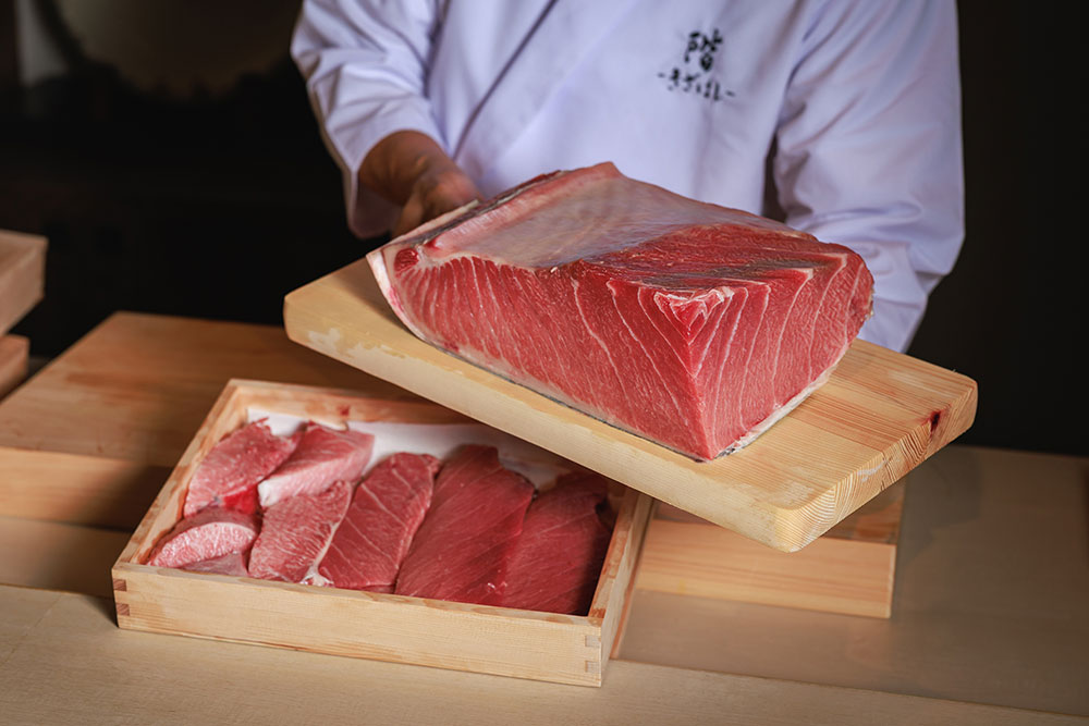 厳選した旬魚と繊細な技が光る鮨、そして欧州の技法を掛け合わせ五感を刺激する鉄板焼き。